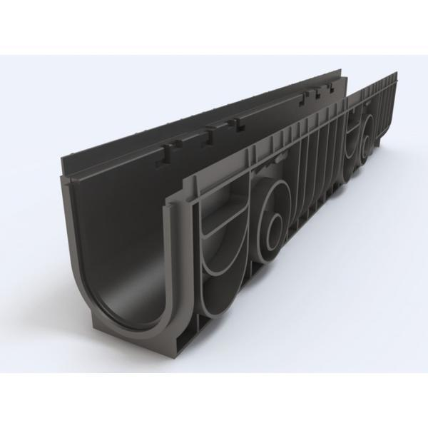Правильно установленный лоток выдерживает нагрузку класса В, до 12.5 тонн на 1 м². У лотка есть ребра жесткости на боковых стенках, он укомплектован решеткой из усиленного композитного пластика. Решетка препятствует попаданию в водосток камней, листьев и других крупных предметов. Лотки имеют разъемы для присоединения к сточной канализации, легко и надежно скрепляются между собой по ширине, позволяя создать сток нужной длины.