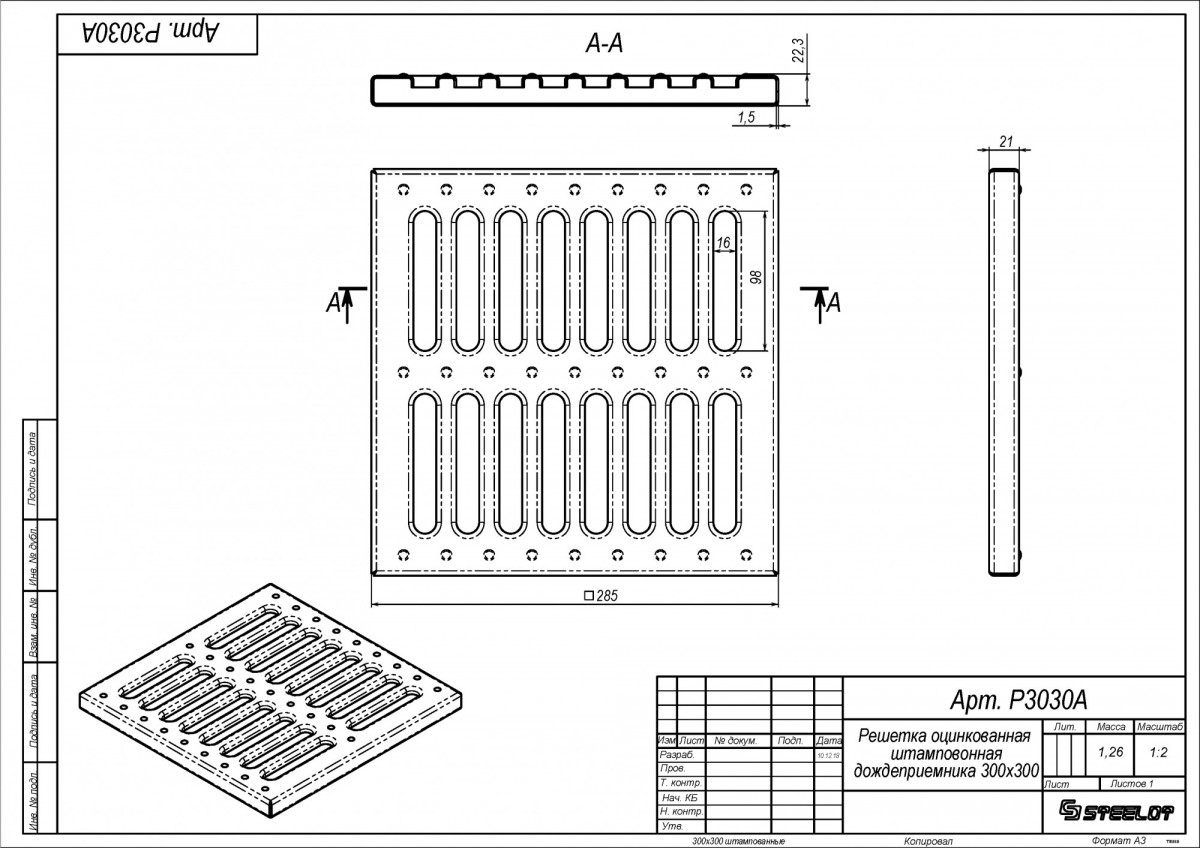 Решетка для дождеприёмника стальная штампованная SteeStart 300х300 А15 STEELOT