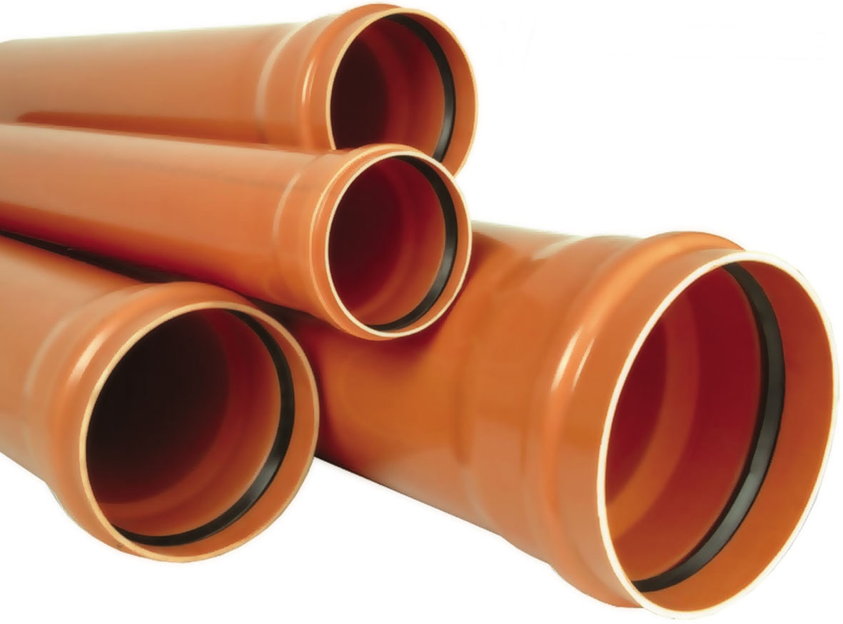 Жёсткие трубы оранжевого цвета применяются при прокладке наружных канализационных систем.