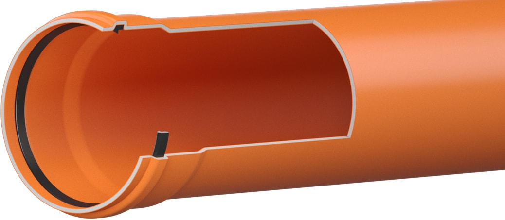 Жёсткие трубы оранжевого цвета применяются при прокладке наружных канализационных систем.