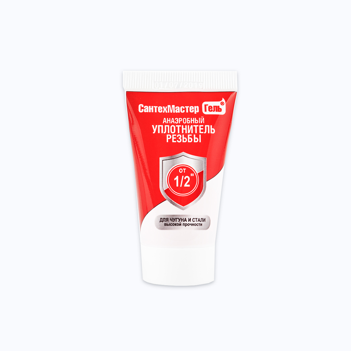 Сантехмастер Гель Красный для чугуна и стали - это анаэробный герметик для резьбовых соединений из черного металла. Этот гель отлично подходит для сверхпрочной фиксации и герметизации резьбы и фитингов в трубопроводах, собранных с использованием черных металлов. Применяется для соединений диаметром от 1/2"