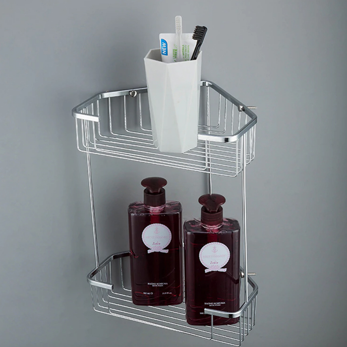 ПОЛКА ДЛЯ ВАННОЙ УГЛОВАЯ 2-ЯРУСНАЯ F335-1 ХРОМ, РЕШЕТКА "FRAP"