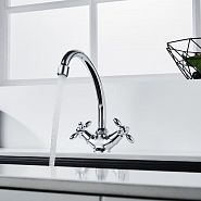 Смеситель для раковины с поворотным изливом Decoroom DR53012, двухвентильный, хром