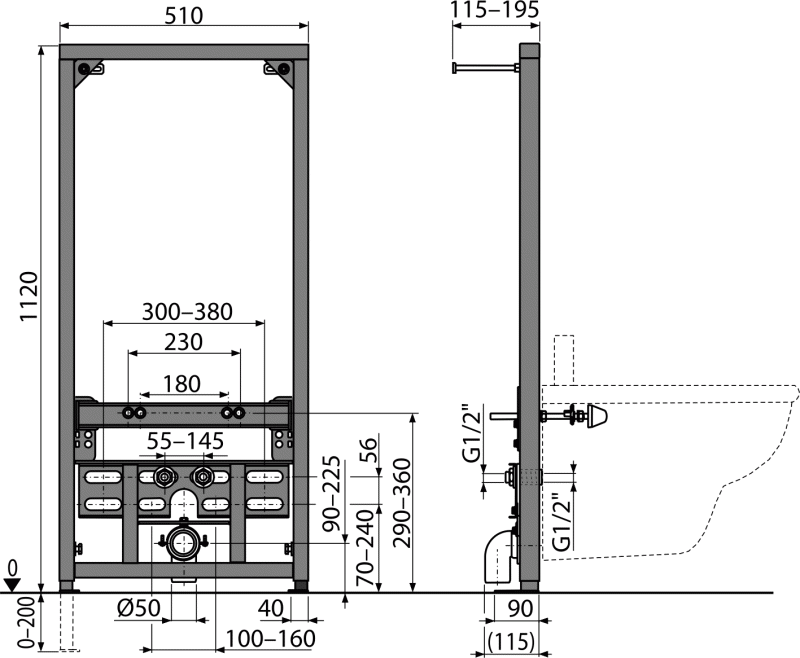 Рама для биде ALCA PLAST (высота монтажа 1,12 м арт.A105/1120 АКЦИЯ