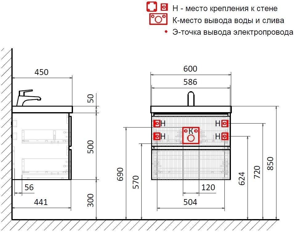 Тумба с раковиной для ванной AQUAme S1 "600 мм цвет серый"+Астория 600, AQM900160GM+1017000600001