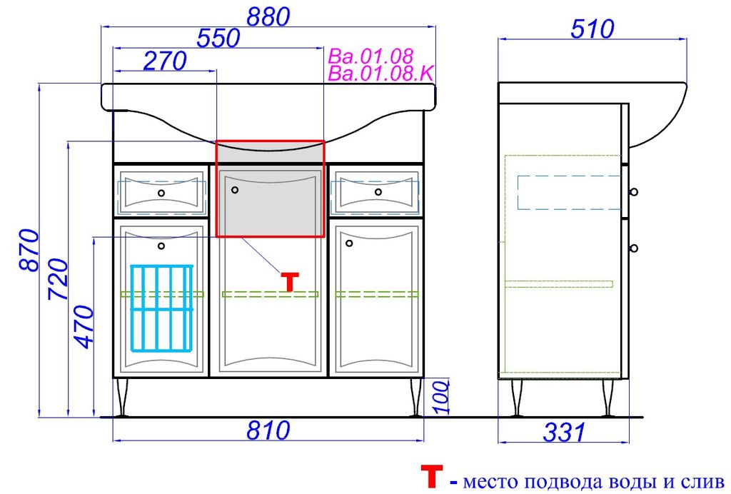 -Тумба Aqwella "Барселона-Люкс" 85 корзина, на ножках 2-мя ящ. (BА0108К) + раковина Стиль 850
