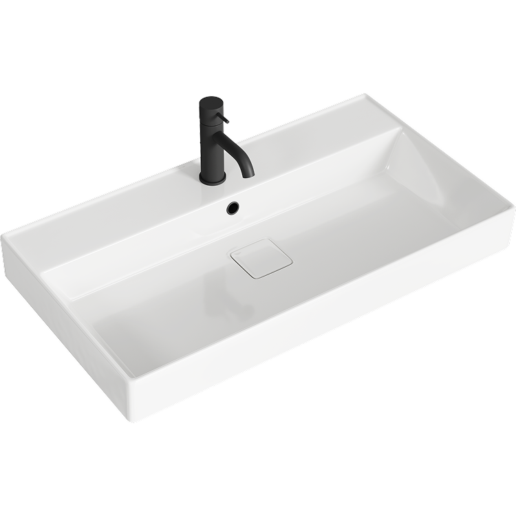 Подвесная тумба Aqwella Geometria с двумя ящиками 81 см, цвет серый с кер. раковиной Вилис 800