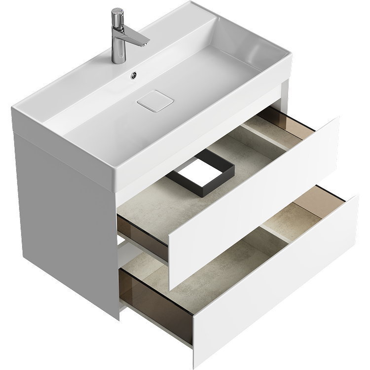 Подвесная тумба Aqwella Geometria с двумя ящиками 81 см, цвет белый с кер. раковиной Вилис 800