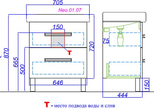 Тумба напольная Aqwella НЕО Т7 645*750*445 c умывальником Тигода 70 АКЦИЯ