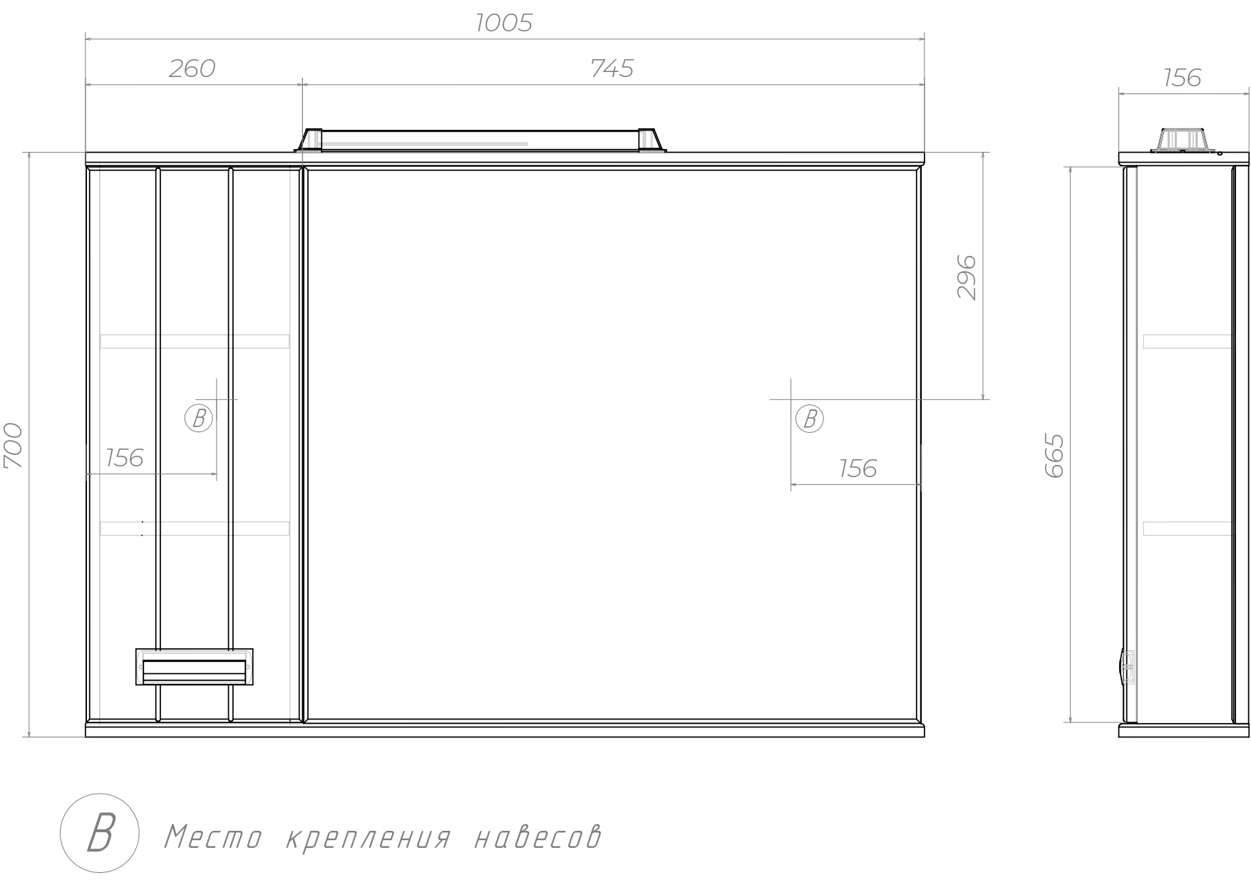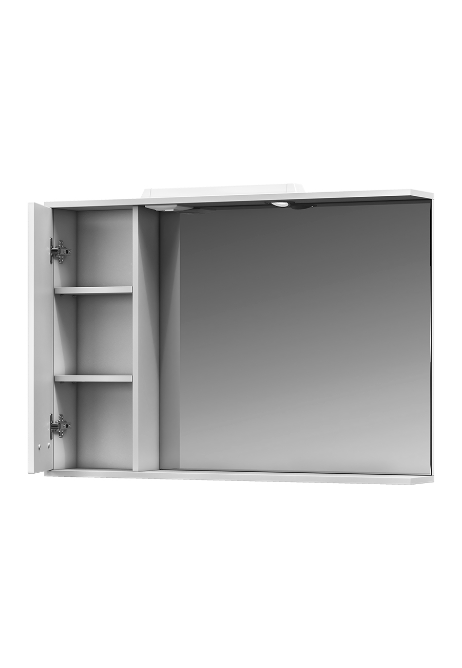 Оснащение: 1 дверца; 2 полки ЛДСП; ручка металлическая хромированная; 1 светодиодный светильник; включатель с розеткой