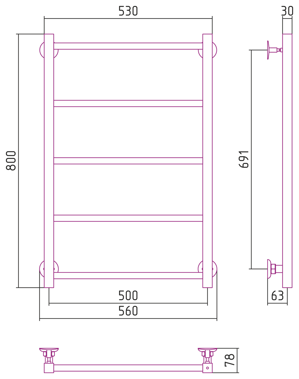 Полотенцесушитель СТИЛЬЕ Версия-КН 800х500 (5) П 20х20 (Черный) арт.17640-8050