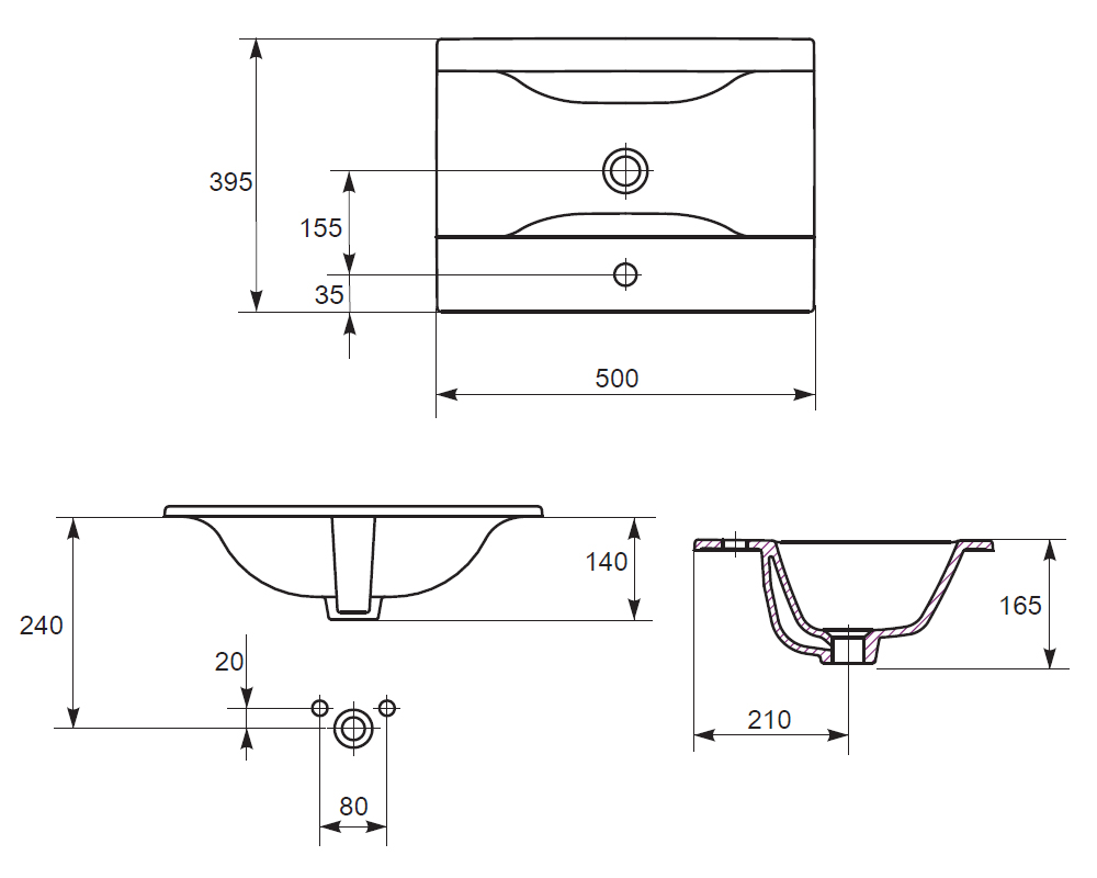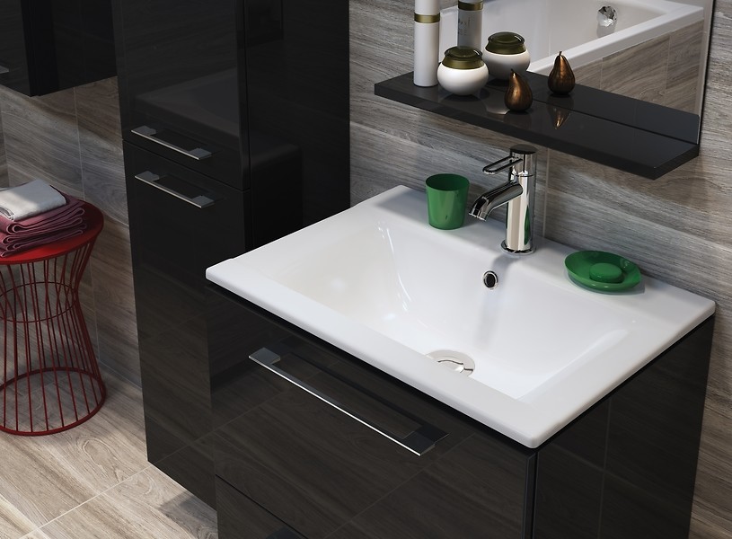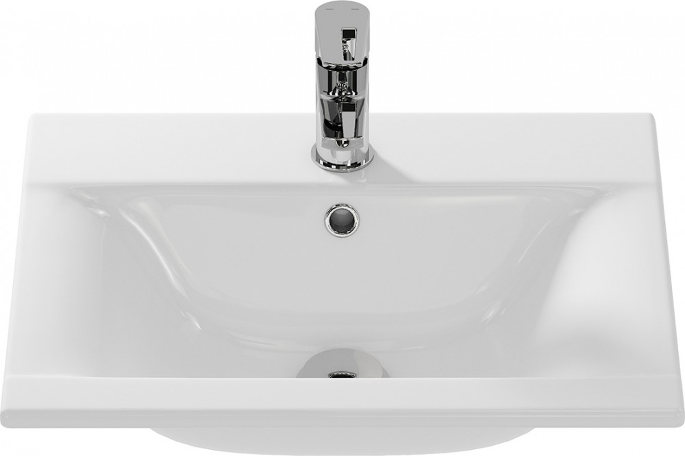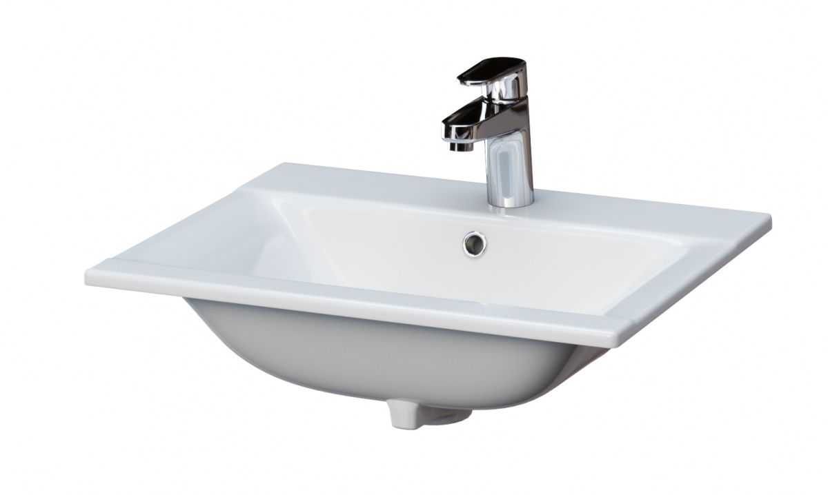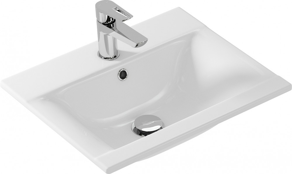Тонкая раковина Ontario с отверстием под смеситель. Может устанавливаться на тумбу и на столешницу.