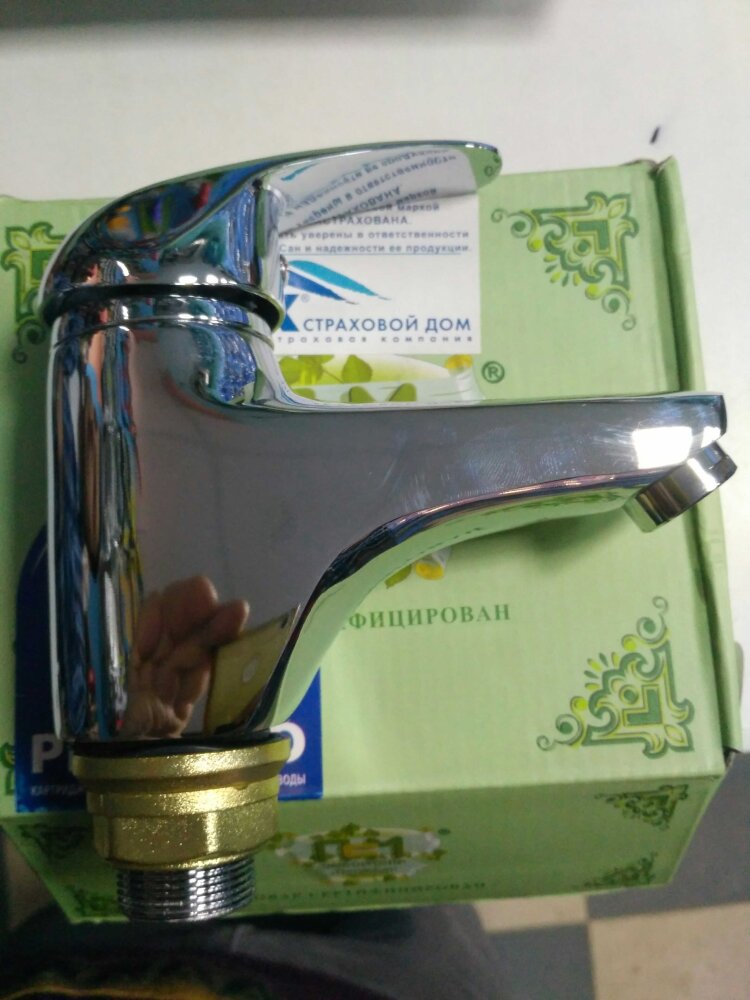 Это латунный смеситель для раковины. Сантехника из латуни служит намного дольше из-за надежности материала и прочности. Также латунь не подвергается коррозии металла, что делает оборудование долгослужащим.