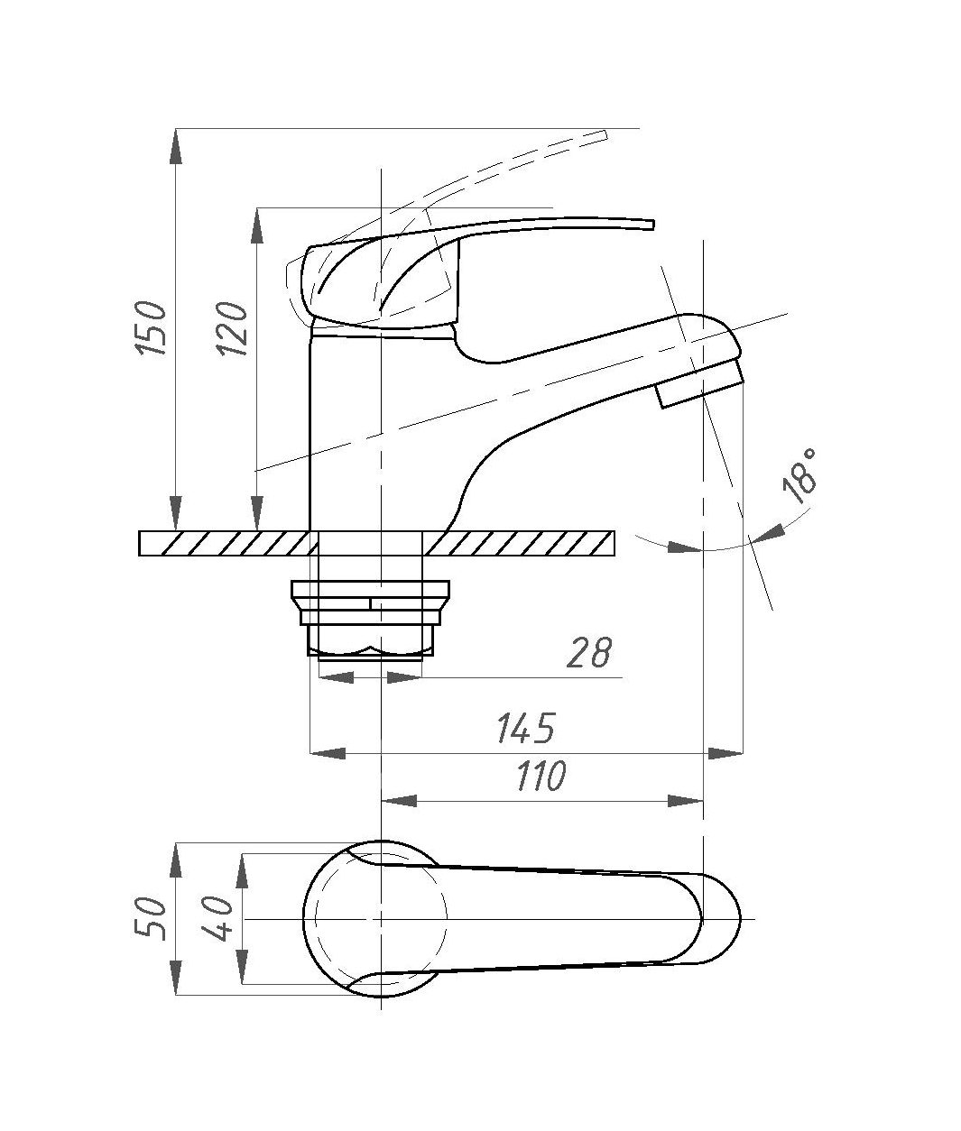Наименование смесителя по ГОСТ 25809-96: Смеситель для умывальника и мойки однорукояточный центральный набортный, излив с аэратором