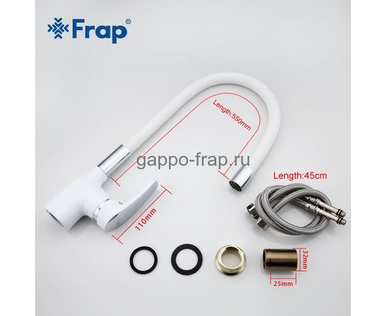 -Смеситель для кухни Frap d-35 на гайке МАКСИ (белый/хром) 4453-03 АКЦИЯ
