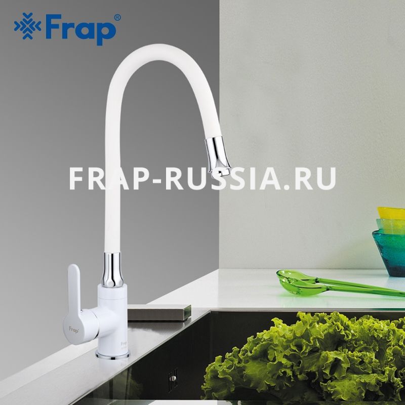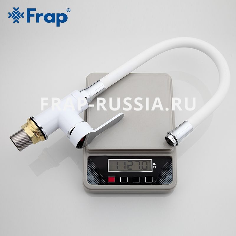 Смеситель для кухни Frap шар d-35 бел/хром, гибкий излив, на гайке 4041