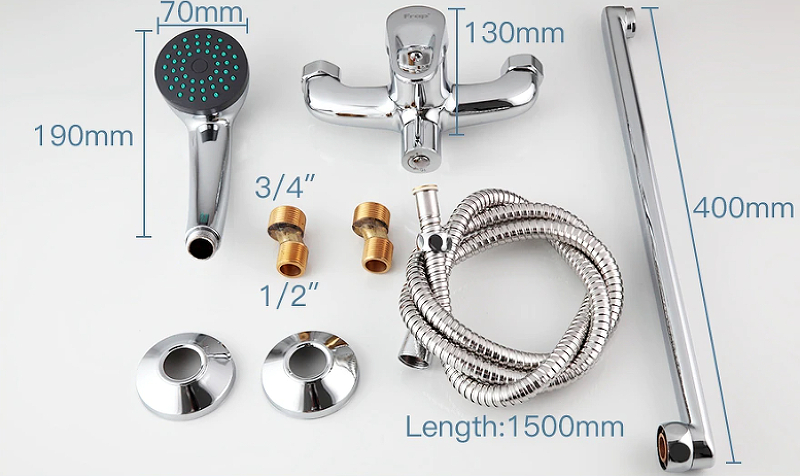 В КОМПЛЕКТЕ:Душевой шланг 150 см, Душевая лейка, Держатель лейки, Комплект отражателей, Комплект эксцентриков