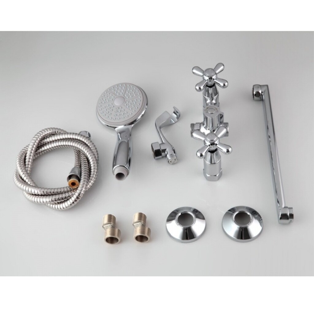 В КОМПЛЕКТЕ:Душевой шланг 150 см, Душевая лейка, Держатель лейки, Комплект отражателей, Комплект эксцентриков