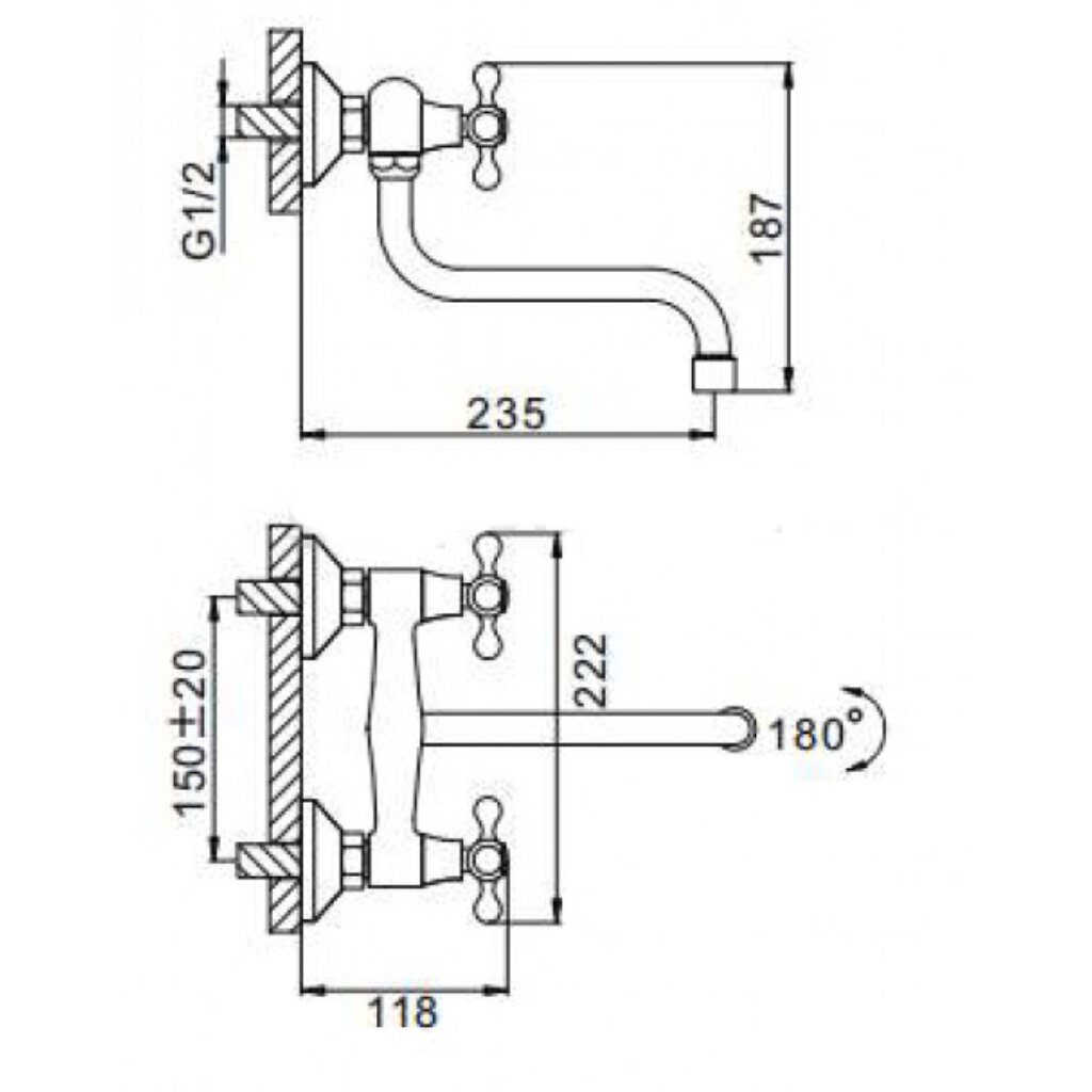 Смеситель для кухни Frap F4608, настенный, двухвентильный, хром