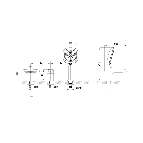 Смеситель Lemark STATUS на борт ванны на 3 отв арт. LM4445C АКЦИЯ