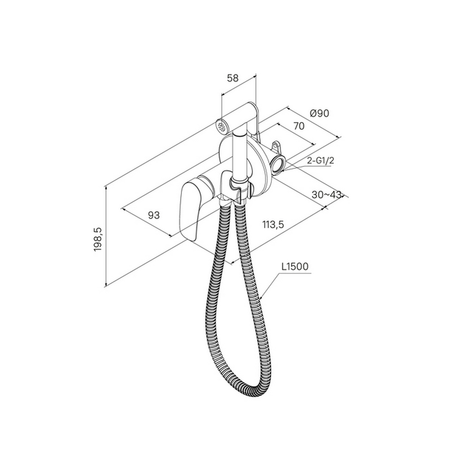 В комплекте гигиеническая лейка из ABS-пластика и душевой шланг из ПВХ (1,5 м).
