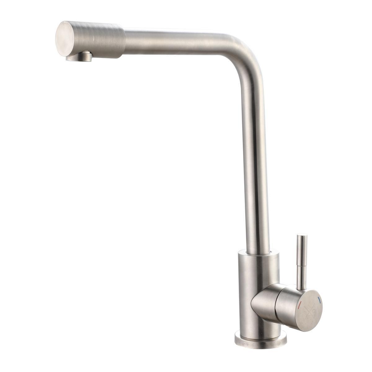 Одноручковый смеситель для кухни из нержавеющей стали с высоким изливом прекрасно подойдет для мойки любого размера, обладает аэратором.