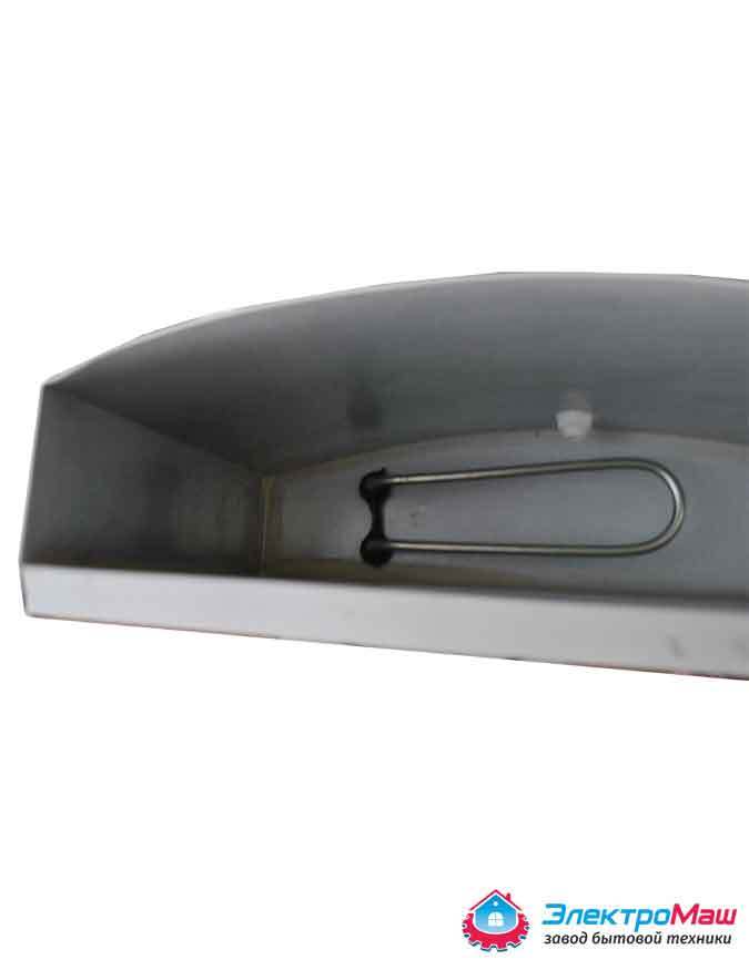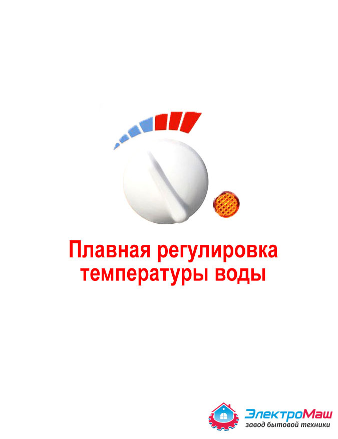 Бак выполнен из металлического листа 0,6 мм и окрашен порошковой краской. Внутри бак покрыт гальваническим цинковым покрытием, имеющим повышенную устойчивость к коррозии. Корпус состоит из стальной емкости, куда вмонтирован трубчатый нагреватель, датчик аварийного отключения ТЭНа. На лицевой стороне водонагревателя находится кран для слива воды и ручка терморегулятора для установки необходимой температуры воды. Имеется провод для подключения к однофазной сети с евровилкой. Бак имеет пробку для слива воды.
