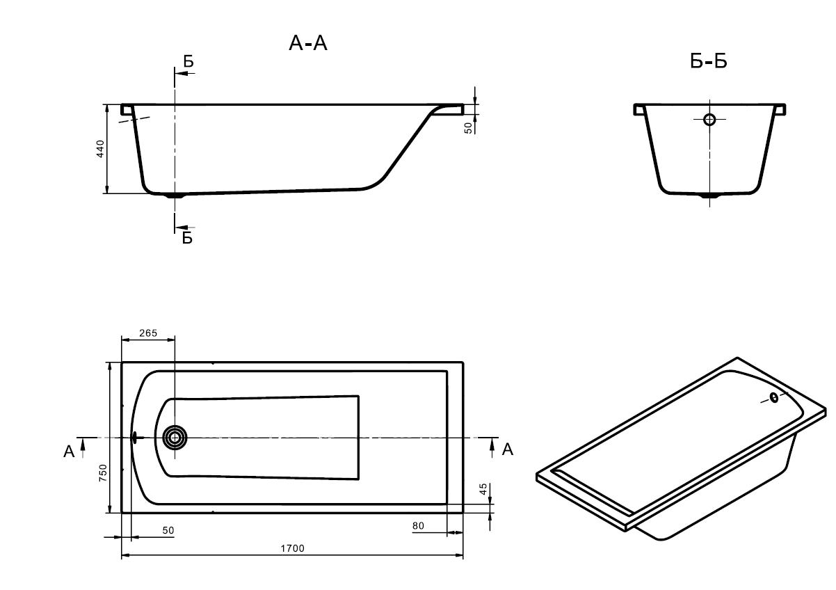1.WH50.1.596 АКРИЛОВАЯ ВАННА SANTEK ФИДЖИ 170Х75 ПРЯМОУГОЛЬНАЯ БЕЛАЯ