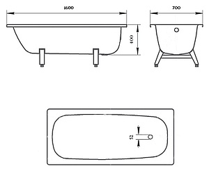Описание: одноместная стальная ванна, размер 170x70x40 см, с опорной подставкой, цвет белая орхидея