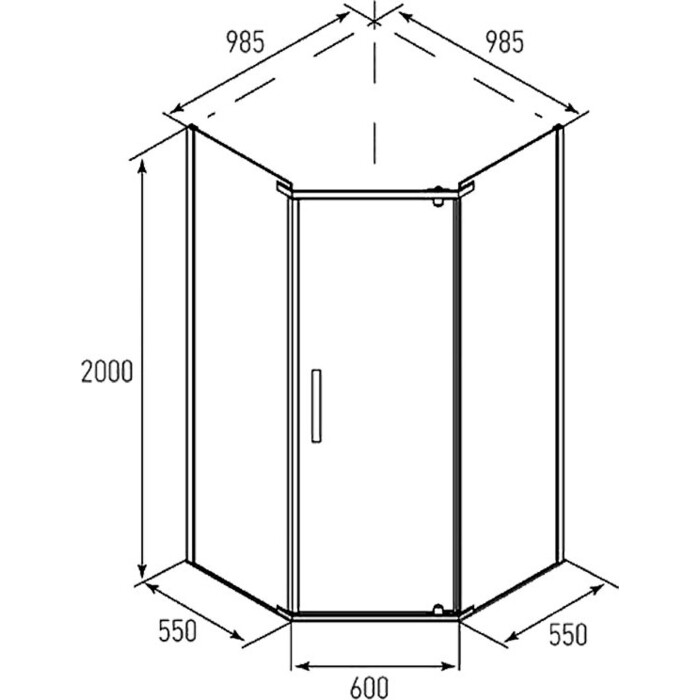 Душевое ограждение ALEX BAITLER™ AB215-100 (1000*1000*2000) Форма пятиугольная Стекло прозр 8 мм Профиль нерж.сталь