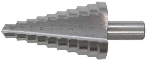 Сверло ступенчатое HSS по металлу,  9 ступеней, 9-36 мм.  FIT 36404 РАСПРОДАЖА