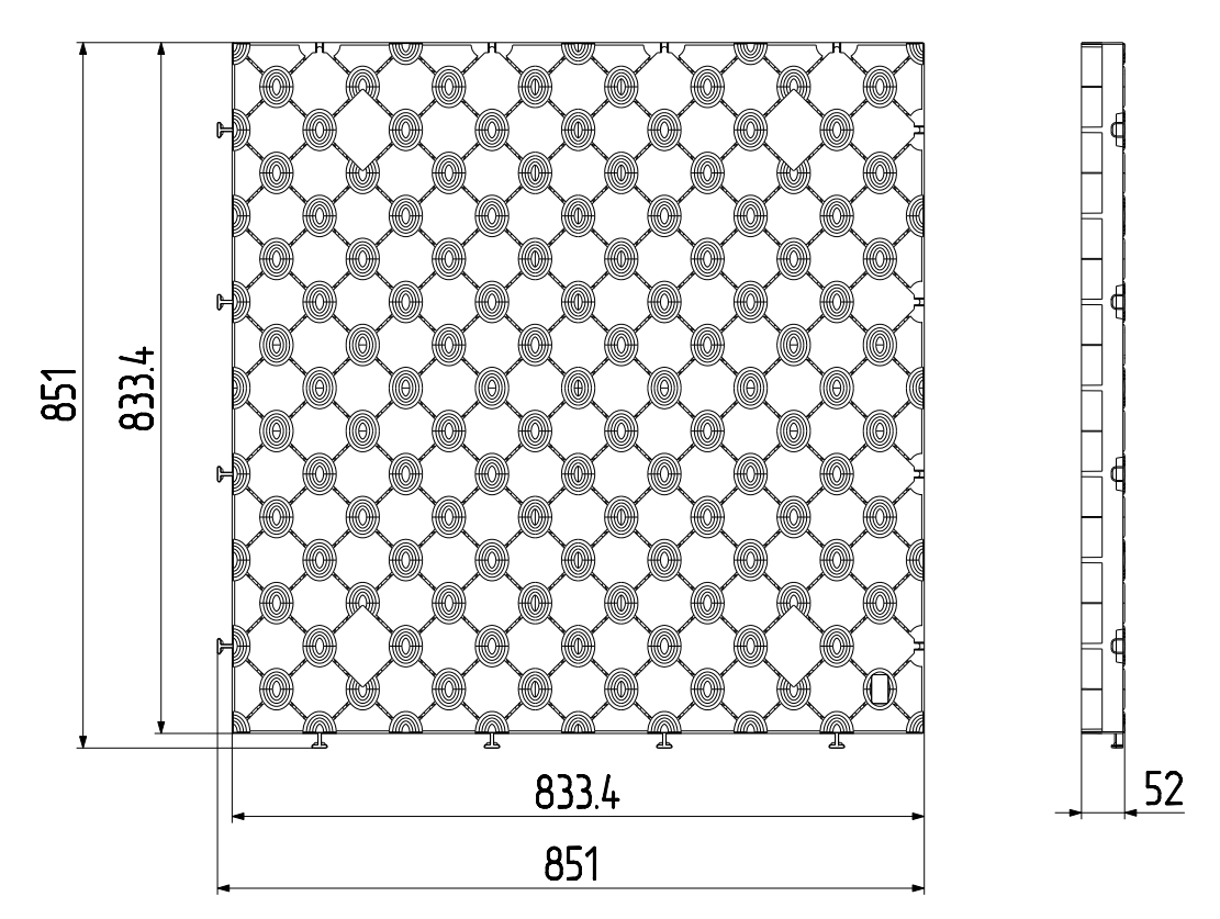 Модуль 0,595м х 0,595м, Размер ячейки 6х5см, Толщина стенки 0,5см, Высота 4см,