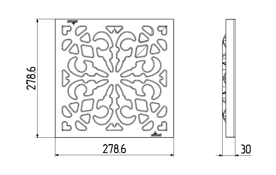 Решётка к дождеприемнику декоративная пластиковая МЕТАЛЛИК (280*280*30 мм)