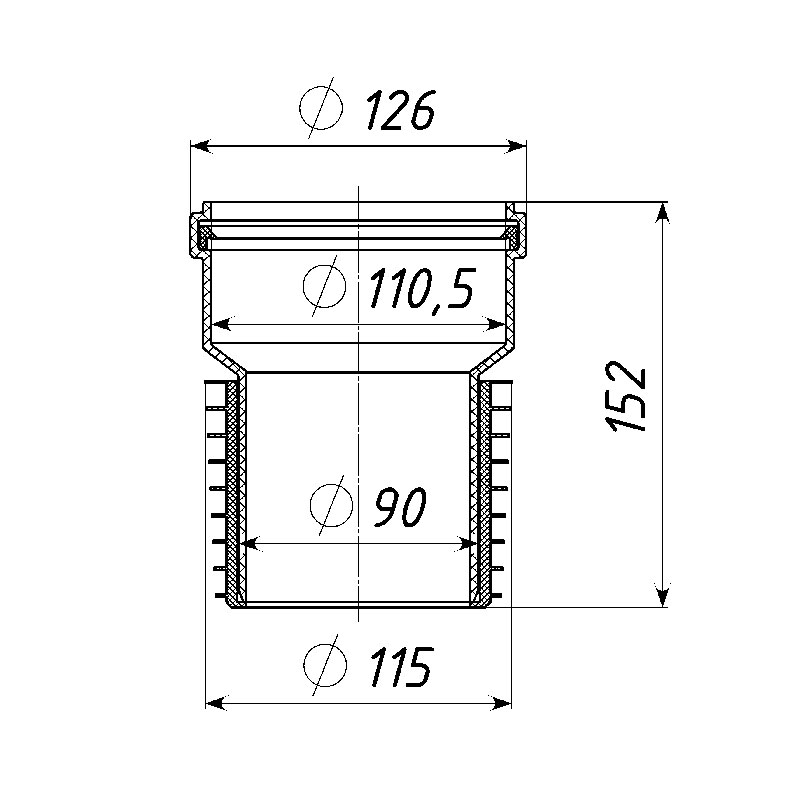Диаметр подсоединяемой трубы - 100 мм.