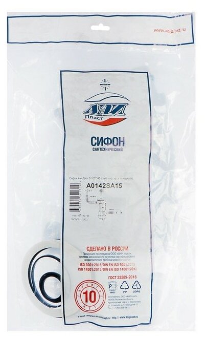 • Сифон сливной АНИ пласт А0142SA15 для кухонных моек с диаметром сливного отверстия 90-98 мм, с переливом