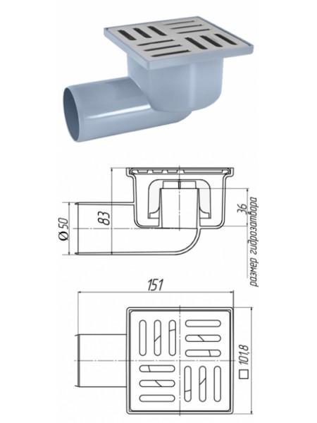 Величина гидрозатвора - 50 мм