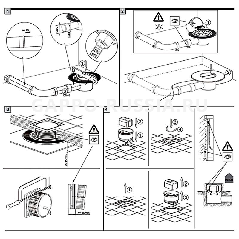 Трап 100*100 (сатин) 50 горизонтальный GAPPO G81010-5 латунь РЕГУЛИРУЕМЫЙ сухой затвор