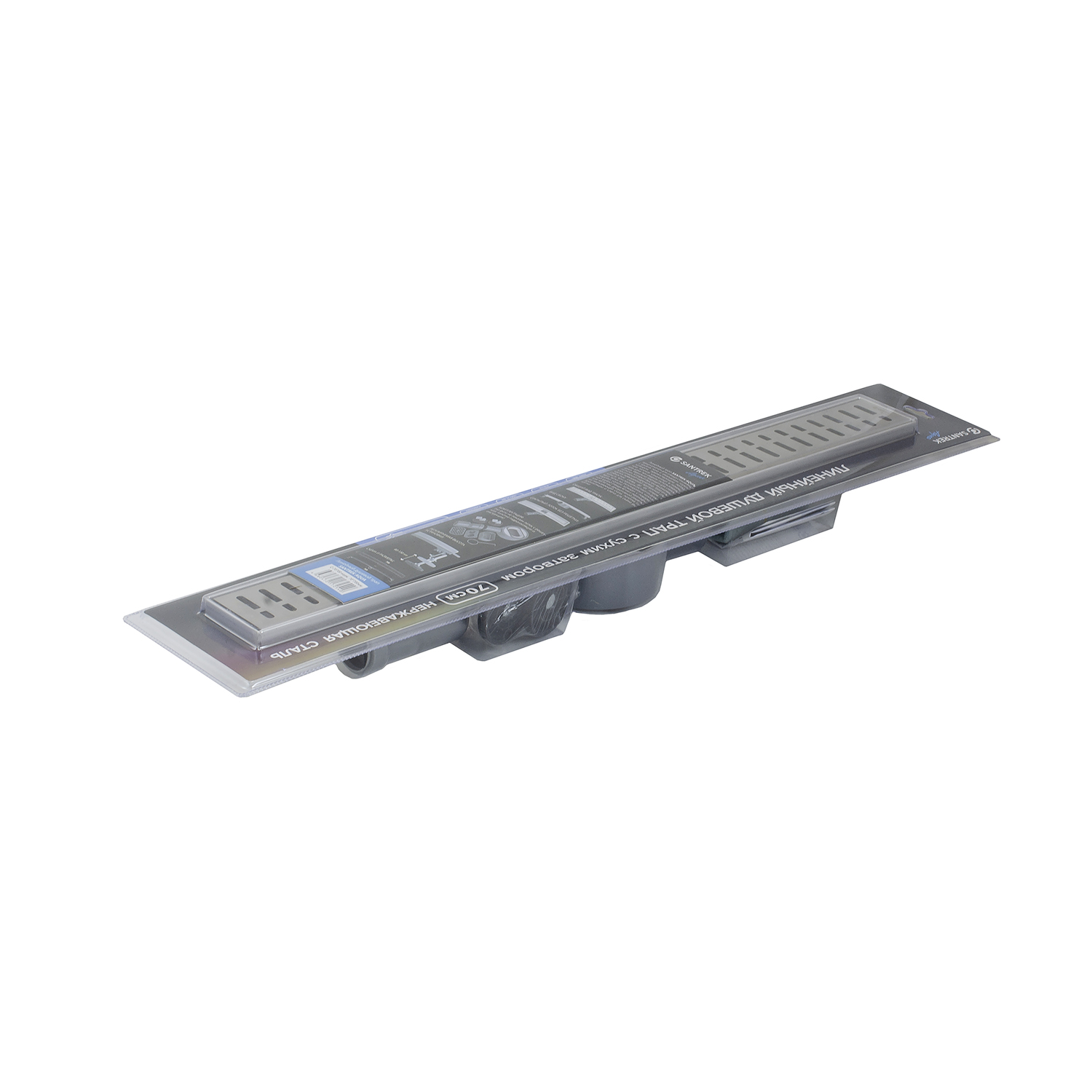 Линейный душевой трап SANTREK AQUA С-70700 нерж 70*700мм (горизонт/выпуск 360 гр, ф40) сухой затвор 319572