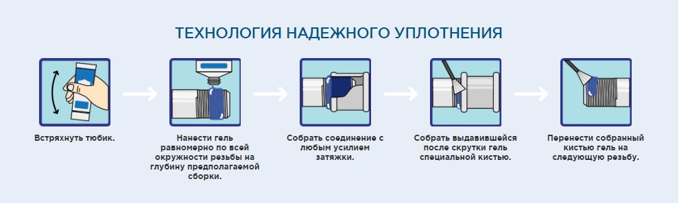 - Защита соединения от коррозии за счет высокой адгезии геля к материалу резьбы.