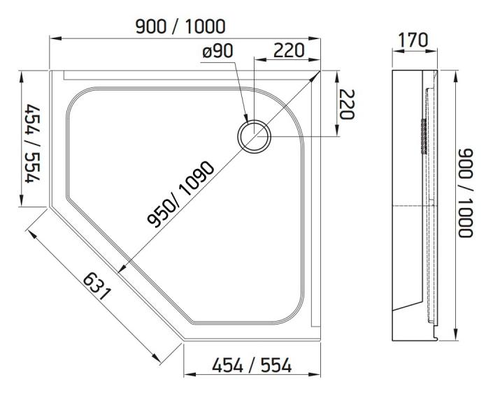 Поддон Alex Baitler, пятиугол 90х90х17, стеклоровинг, в сборе экран съемный АВ 9017V-1