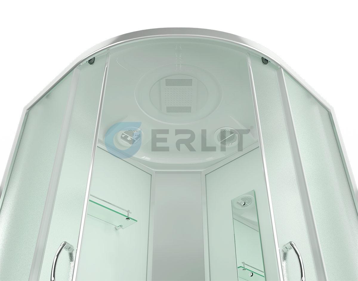 Душ кабина Erlit 100*100*215 арт.ER3510TP-C3 -RUS матовое стекло высокий поддон тропич душ, ручной душ,