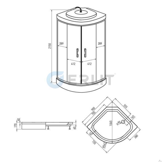 ERLIT ER3508 P-C3 - это душевая кабина в классическом стиле, полукруглой формы (четверть круга), стандартных размеров 80 на 80 см, с раздвижными дверьми, оборудованная системой ручного и тропического душа. Стекла закаленные, травмобезопасные, матовое стекло толщиной 4 мм. Поддон низкий 15 см, на металлическом каркасе, в комплекте с сифоном. Задняя стенка - черное стекло.