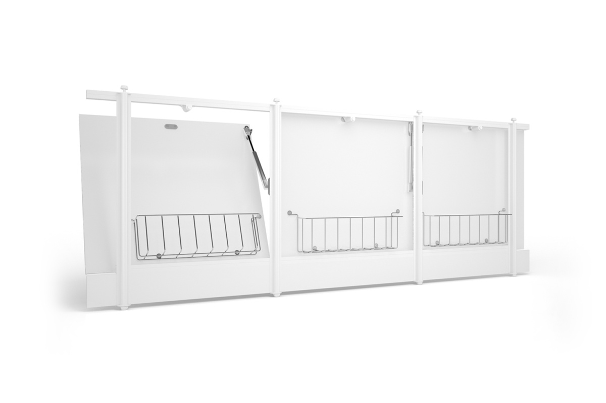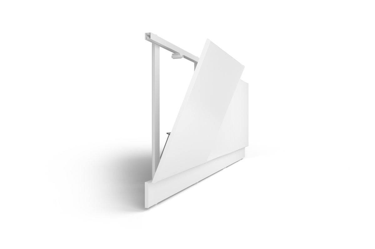 Экран открывается одним нажатием, двери экрана оснащены подъемным механизмом газлиф с магнитной фиксацией. Угол откидывания двери составляет 30 градусов (24см).