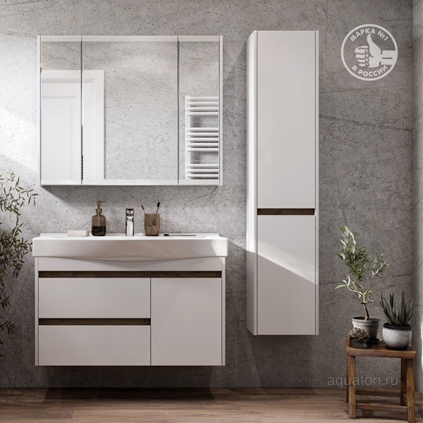 Тумба подвесная Акватон "НОРТОН 100" (белый глянец/буд эндгрейн) + Умывальник Сантек "БЕВЕРЛИ-100" 1A249001NT010 +1WH302502