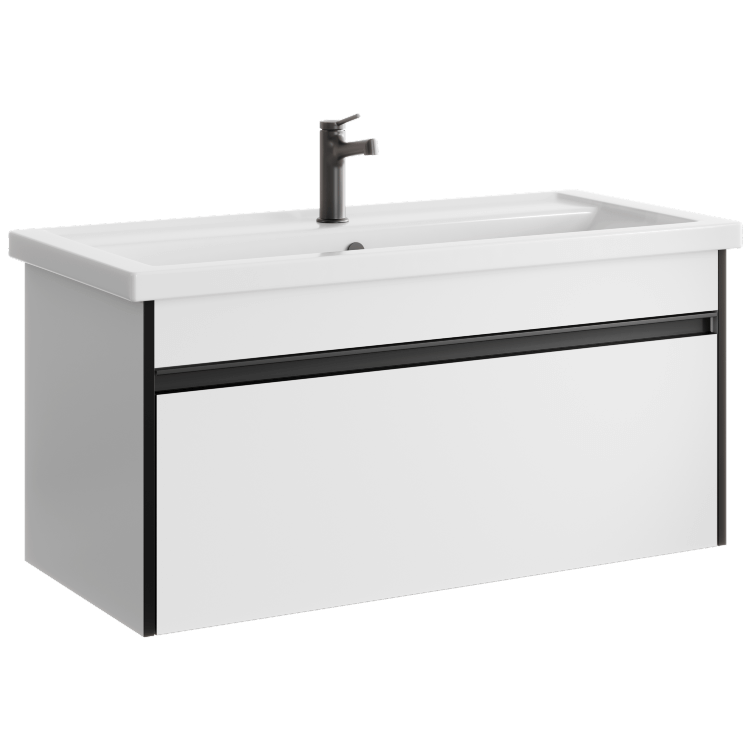 Подвесная тумба 100 см с одним ящиком в белом цвете, с умывальником
