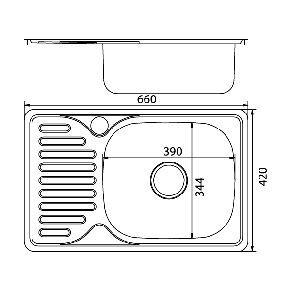 Мойка врезная 42х66 (0,6) правая, вып 3 1/2 MIXLINE 16см с сифоном