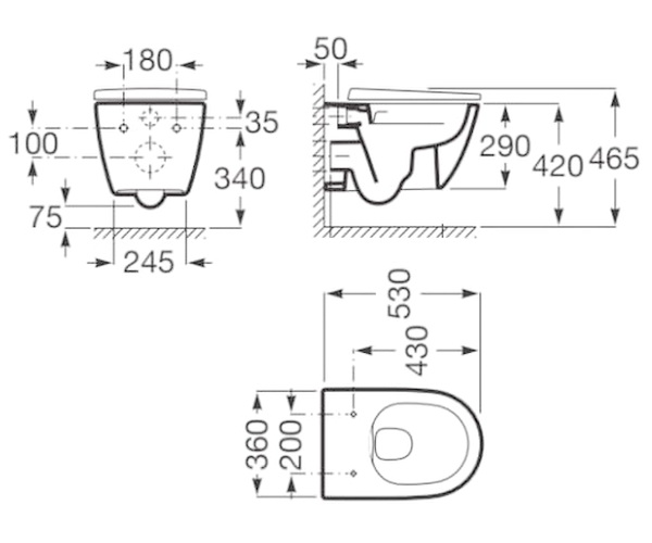 Унитаз подвесной Roca Ona безободковый, белый, с сиденьем дюропласт SC (Z.RU93.1.029.3) микр.лифт.