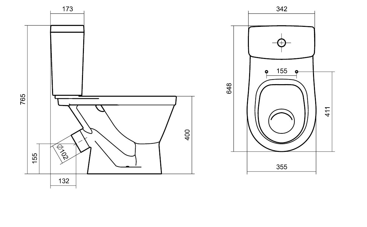 Комплектация - унитаз, сиденье полипропилен, крепления, арматура.