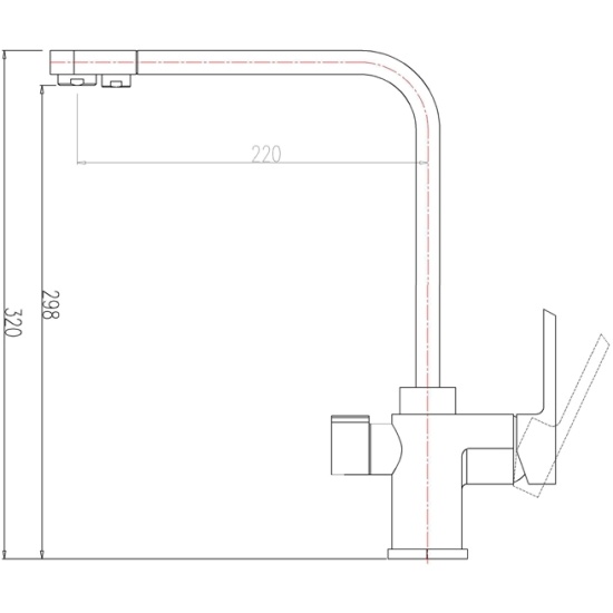 - излив поворотный на 360°, встроены два независимые канала для фильтрованной и водопроводной воды;