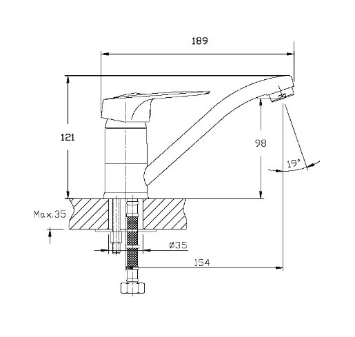 Длина излива, мм154